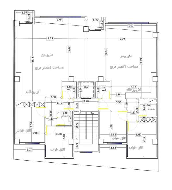 تعداد واحد هر طبقه: 2 (طبقه آخر تک واحدی)